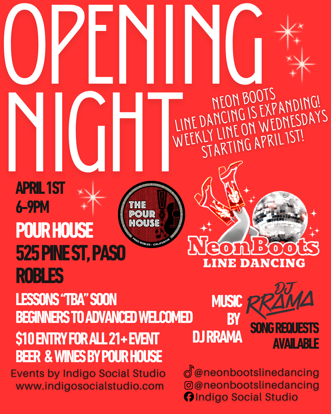 Starting April 1st, we will hold weekly line dancing events at Club Car Bar on Wednesdays, 508 S Main St, Templeton.